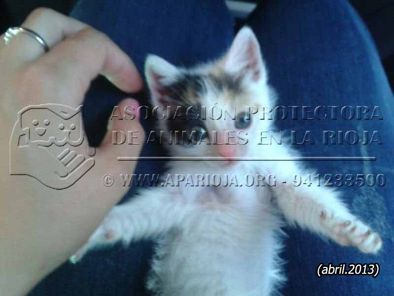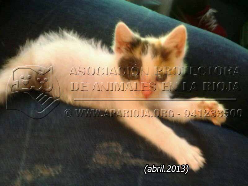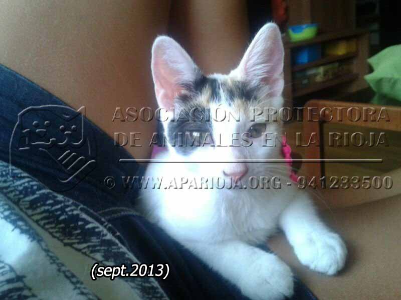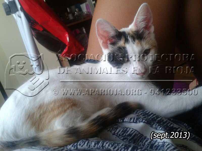 - Observaciones : Estaba en Villamediana junto a un hermanito. Se metieron en un jardín donde había un perro no acostumbrado a gatos, y les atacó. El hermanito murió, pero ella sobrevivió. Fue adoptada en septiembre de 2013, pero su humano ha fallecido y ahora busca de nuevo un hogar donde ser feliz. Es buena y cariñosa. APARIOJA 679064646
