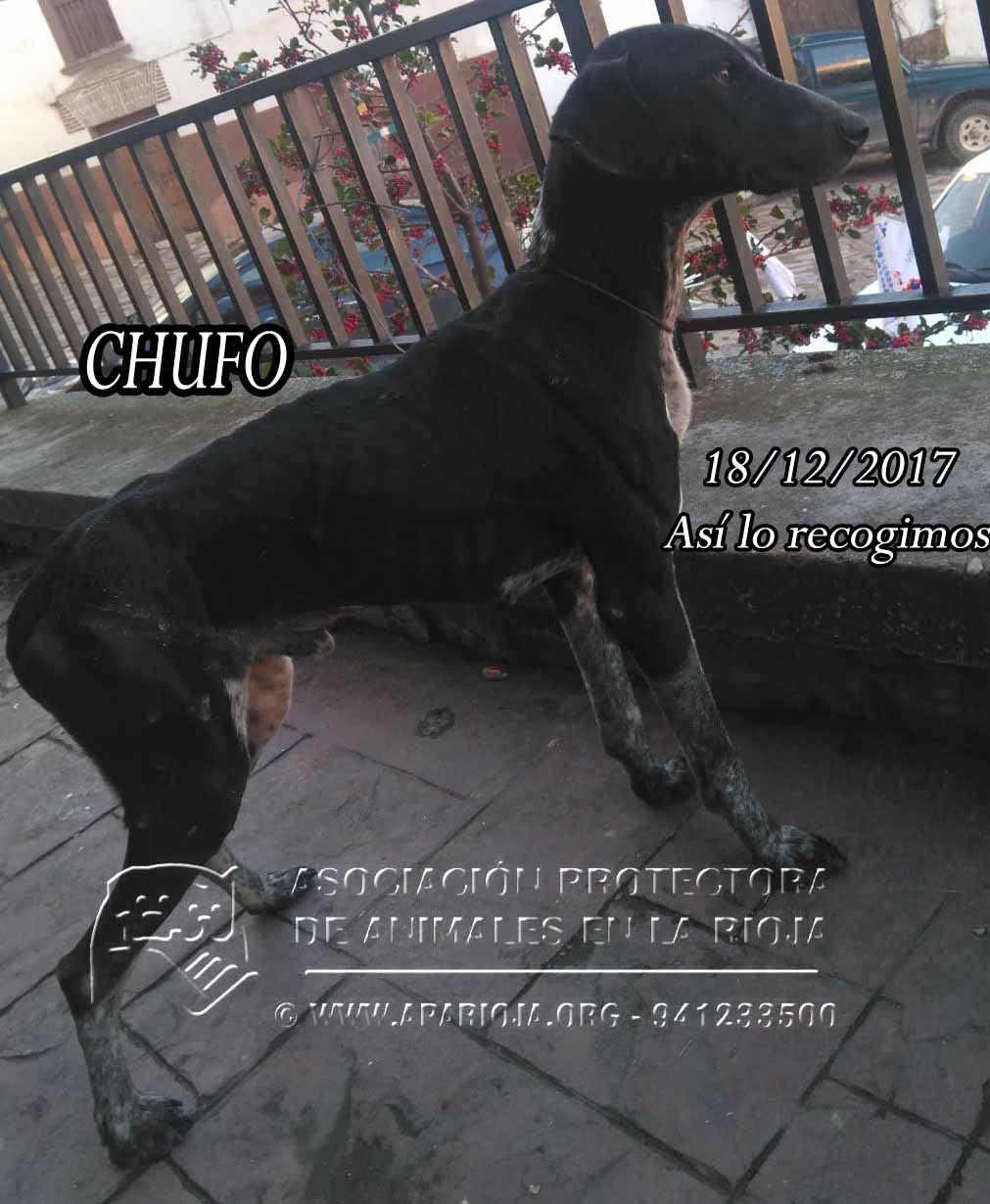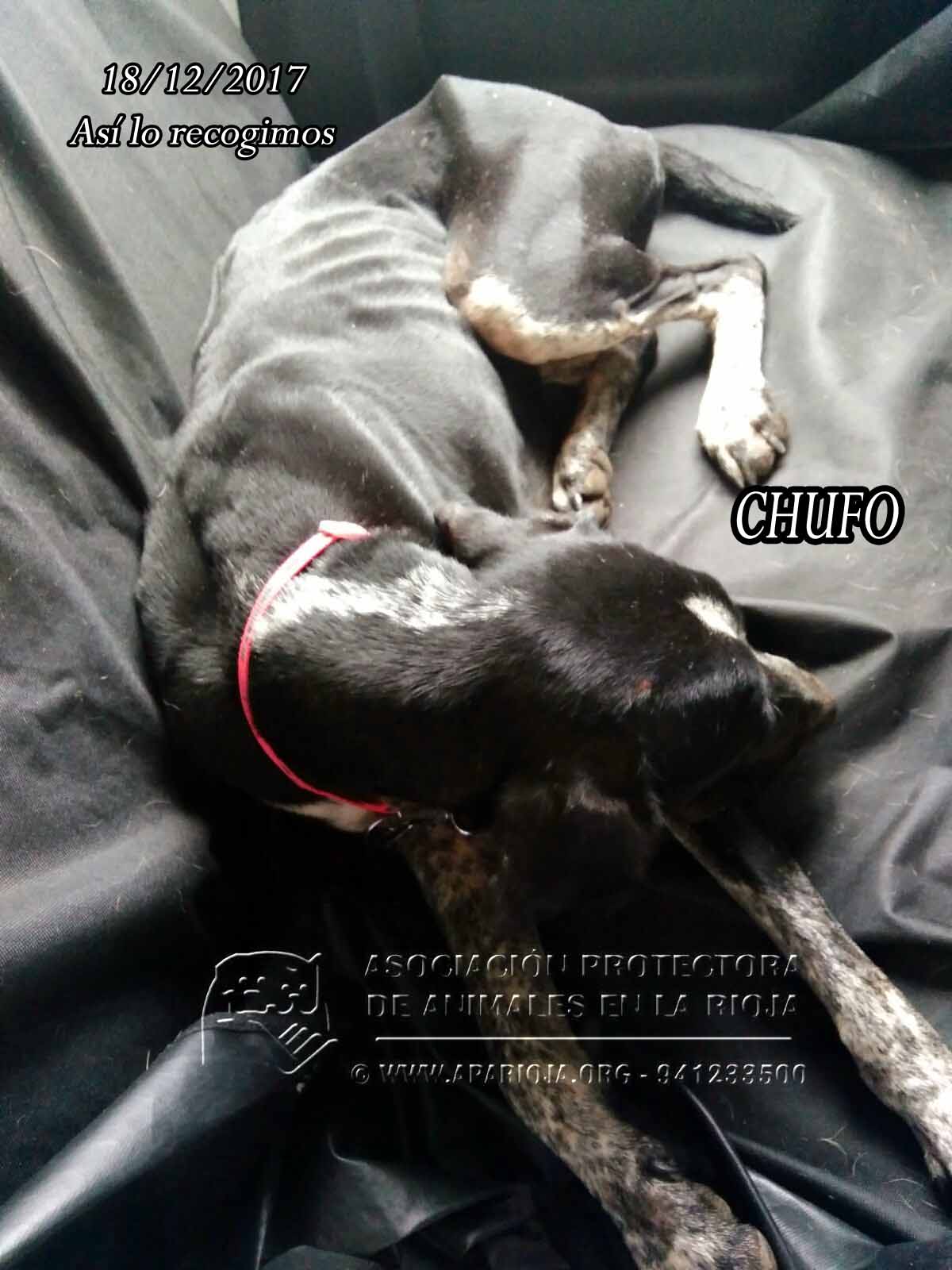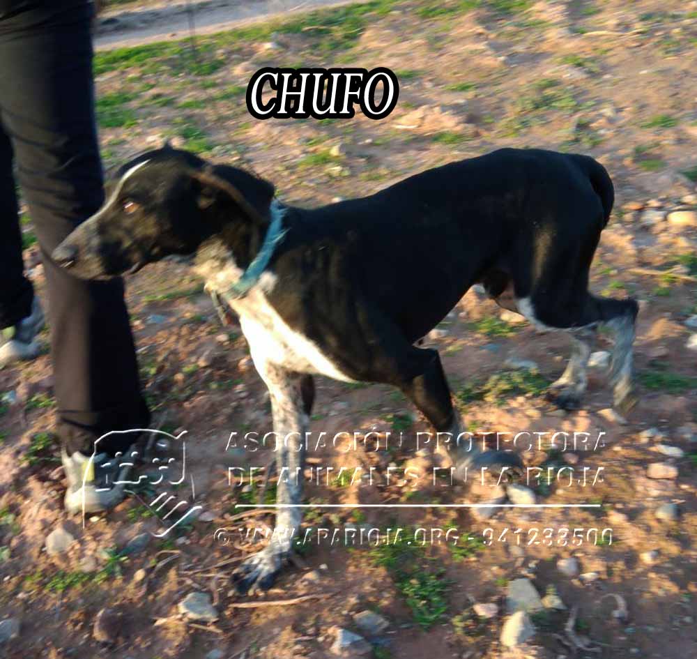 • Observaciones : Fue abandonado en un pueblo de La Rioja y lo recogimos sumamente delgado. Está en una casa de acogida y ya está preparado para encontrar su hogar definitivo. ¡¡ Adopta a Chufo !!