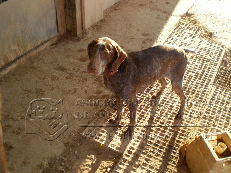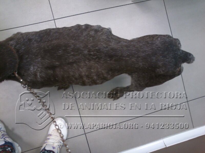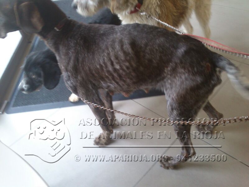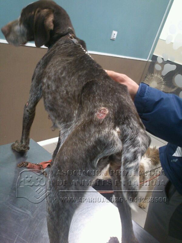 - Observaciones : ESPERANZA es una braca de 12 años. Su dueño la cedió el jueves pasado a la perrera municipal en este estado. Extrema delgadez y desnutrición, llagas por varios puntos de su cuerpo y unos tumores mamarios tremendos en todas sus mamas. Nadie lo denunció, no sabemos si se le impuso multa alguna. A falta de análisis más profundos, solo con las fotos, se intuye cuál ha sido la vida de ESPERANZA: cazar, parir, malvivir y acabar en una perrera para morir. Necesitará muchos cuidados, tanto humanos como veterinarios. Si quieres ser su acogida permanente, su hogar definitivo de adopción, si quieres contribuir con los gastos que habrá, no dudes en ponerte en contacto con nosotros. APARIOJA 679064646 aparioja@aparioja.org Santander IBAN ES14 0049 6684 17 2516128818