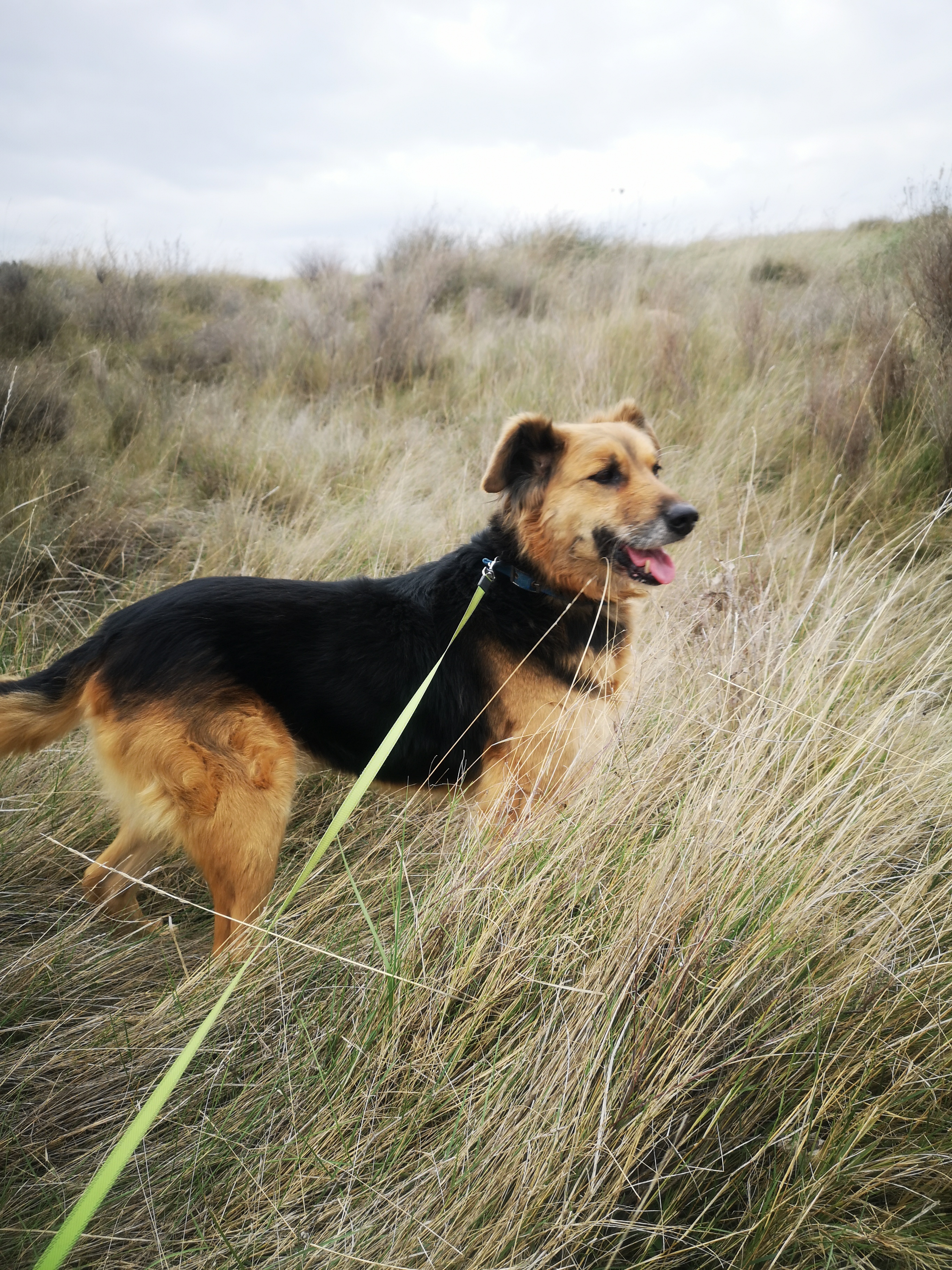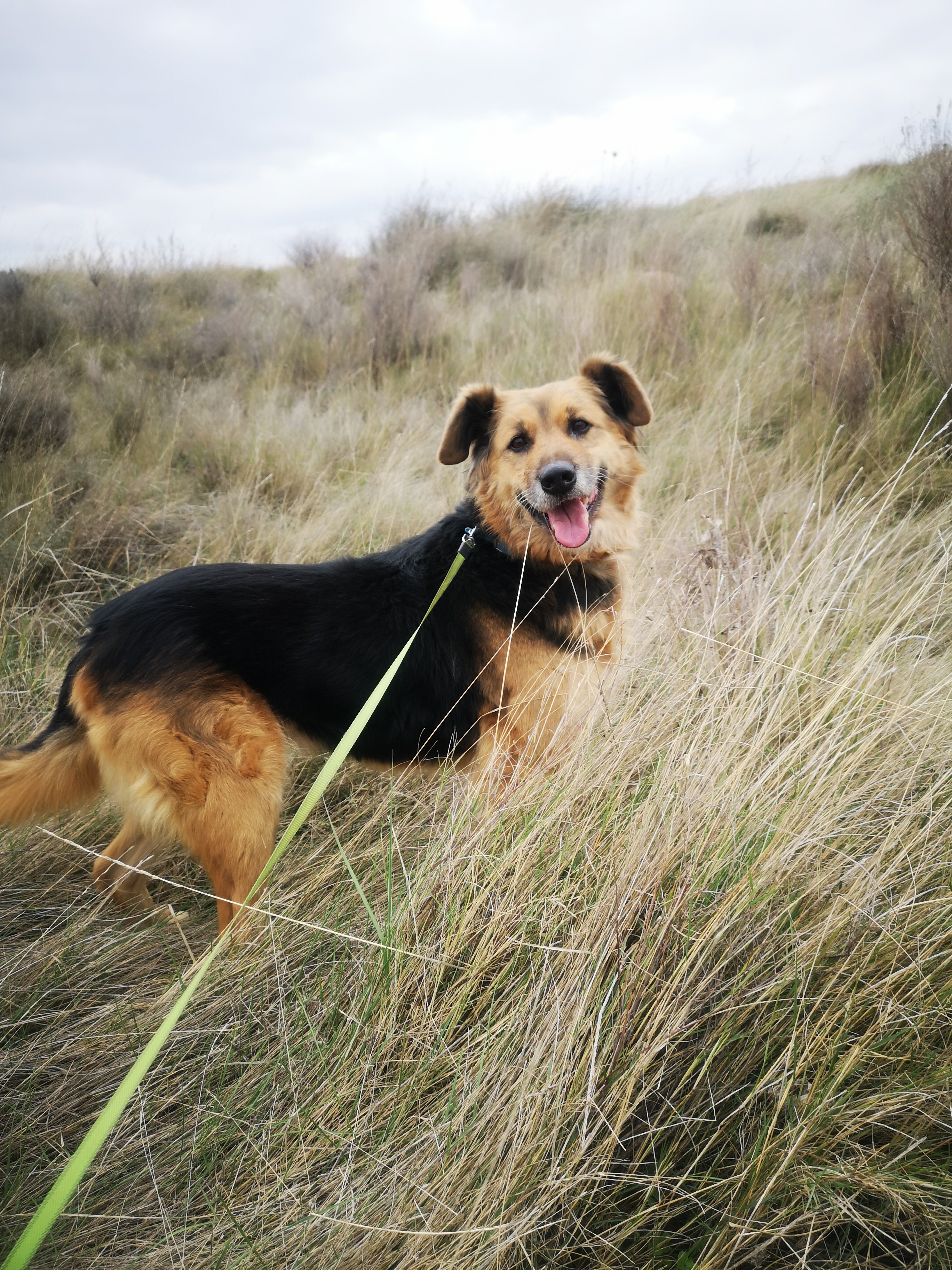 Cariñosa, alegre y sociable, nacida aproximadamente en febrero de 2010. Es de tamaño mediano (unos 15/17 kgs.)