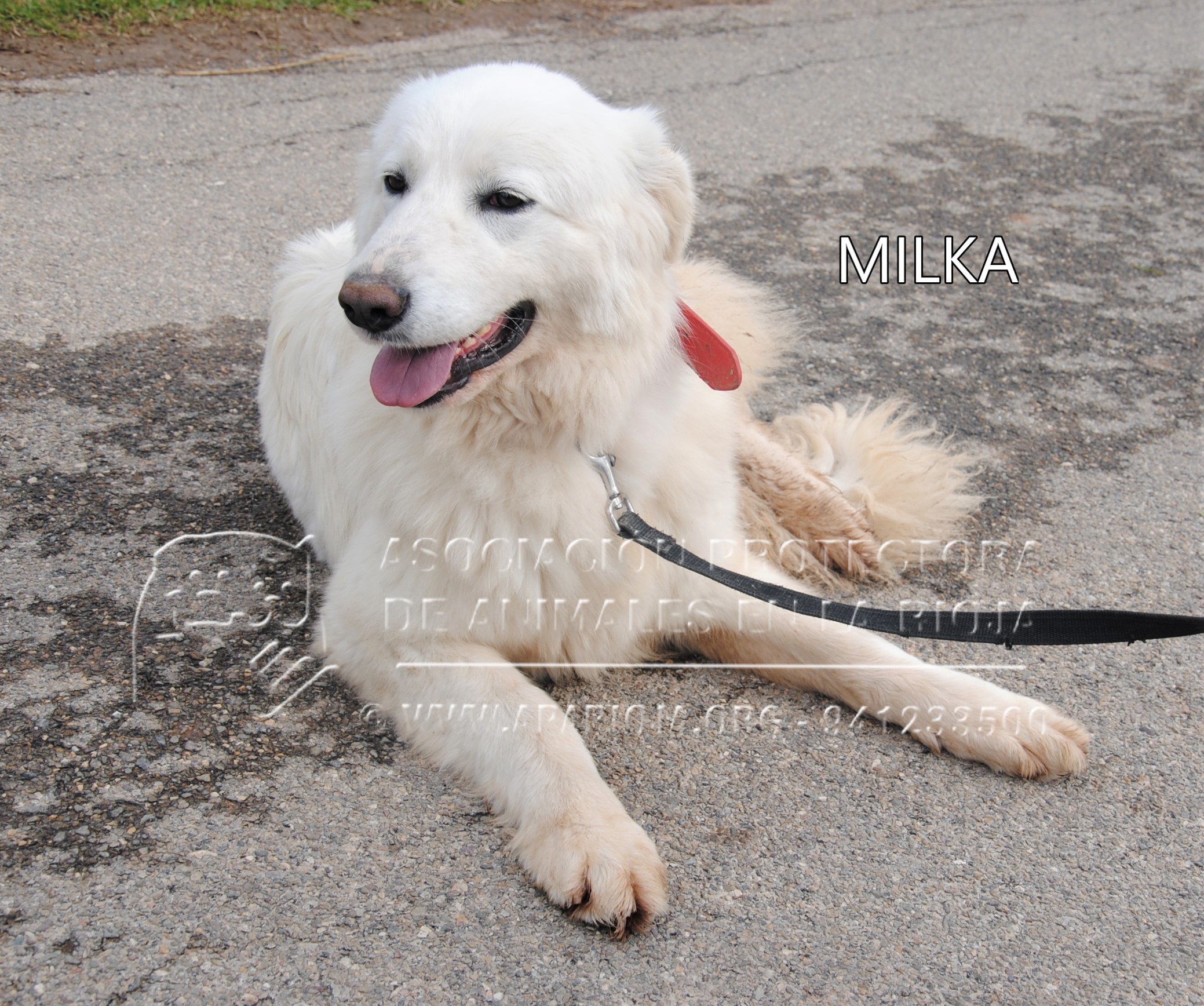 Milka fue recogida por la perrera en un pueblo, sin chip.