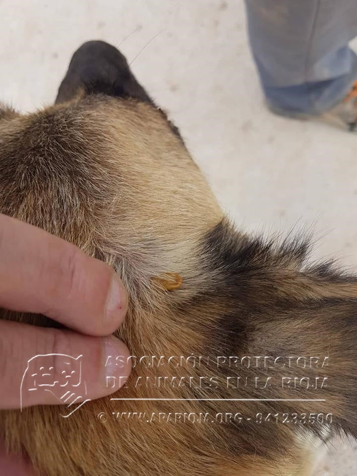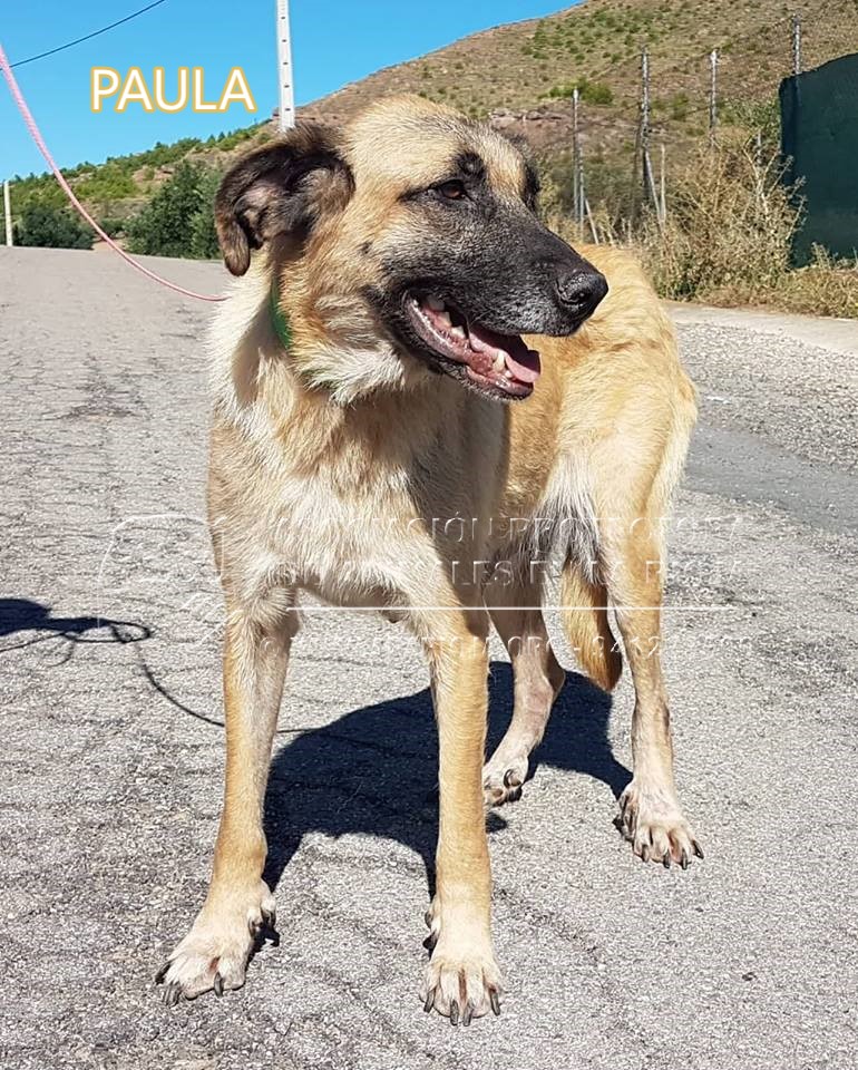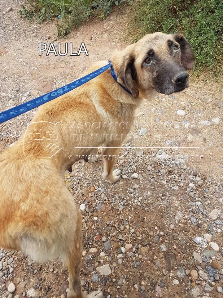 Paula fue recogida en un pueblo en unas condiciones lamentables…desnutrida, con heridas y llena de garrapatas y pulgas. Como en tantos otros casos, carecía de chip. Cuando la llevamos al veterinario dio positivo en leishmania y se le está tratando de esa enfermedad.