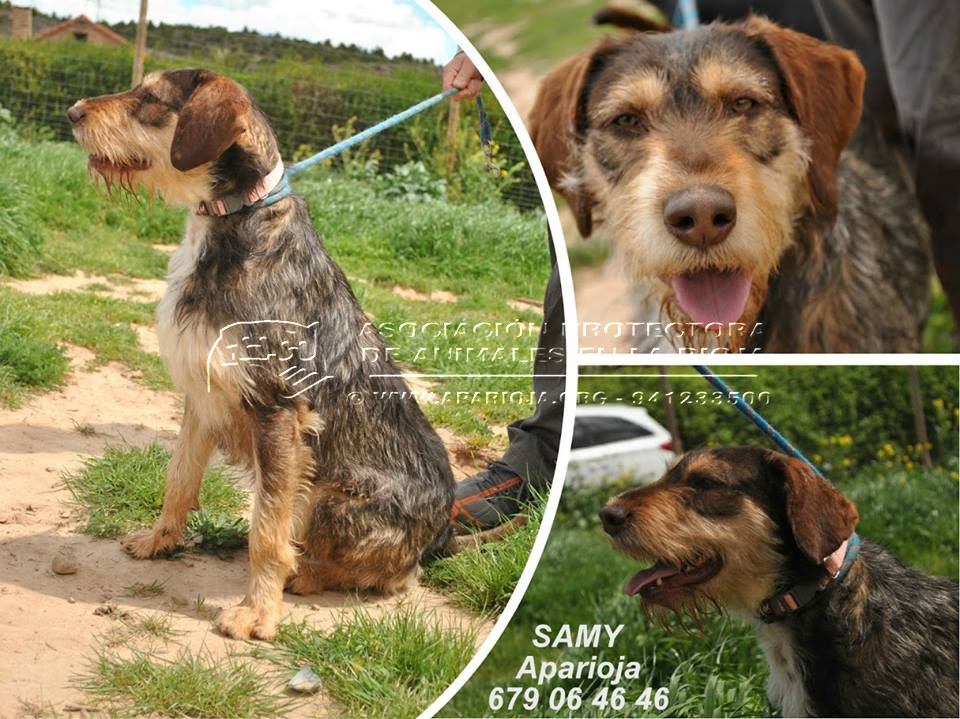 Samy fue abandonado y vagó durante un tiempo por las afueras de un pueblo. Cuando lo recogimos cojeaba y estaba muy delgado y muy falto de cariño.