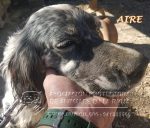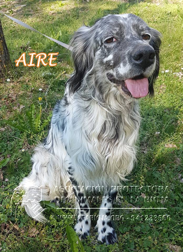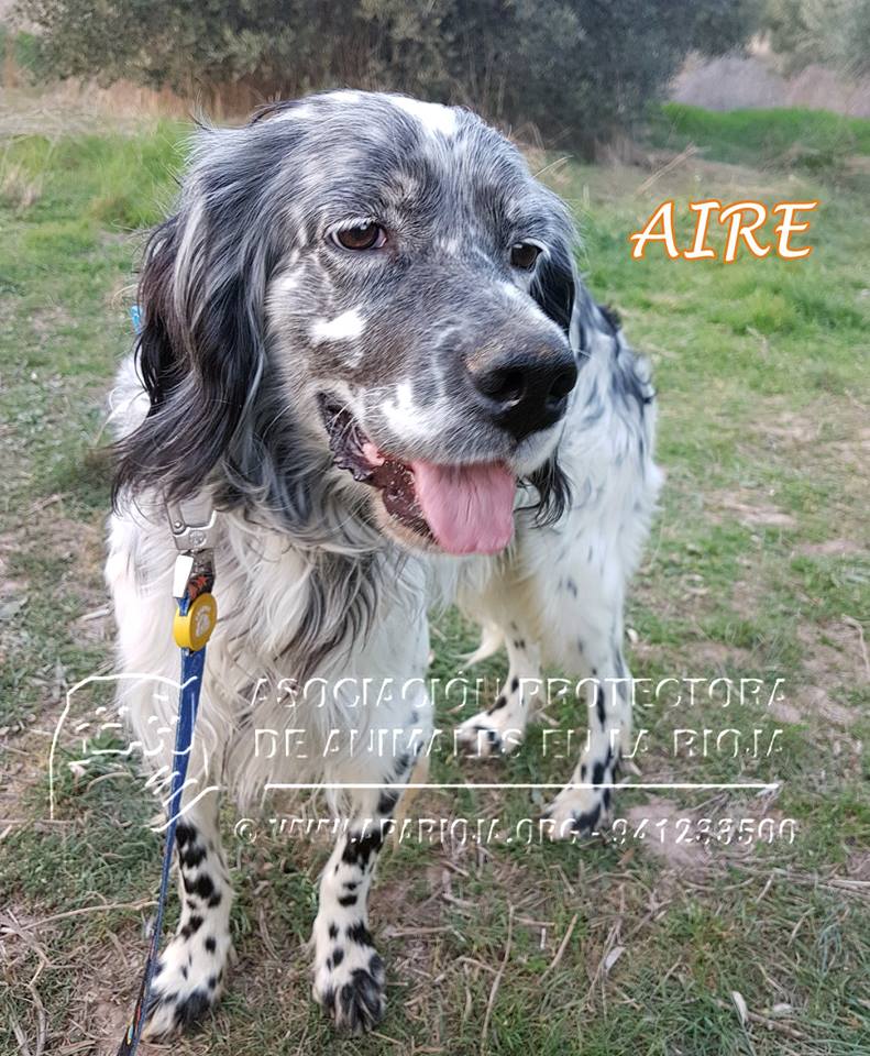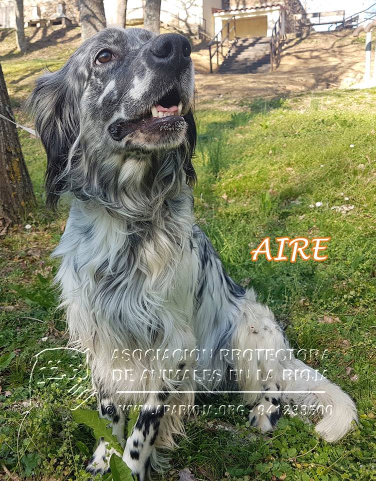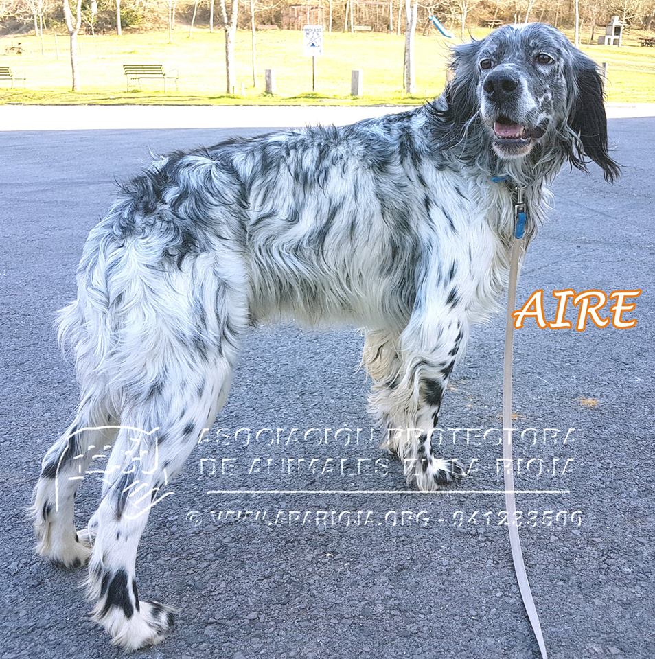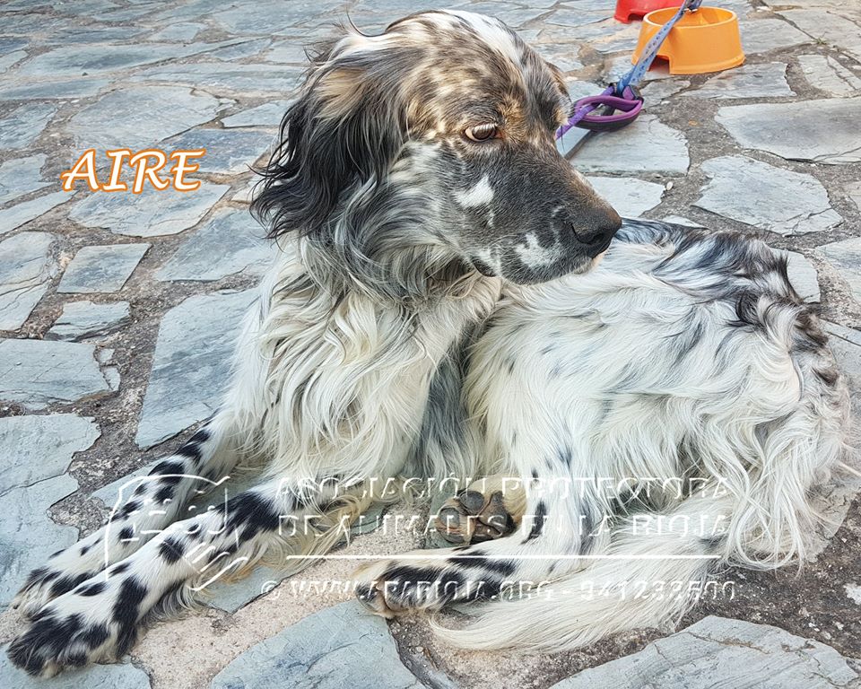 Es un precioso Setter Inglés nacido aproximadamente en abril de 2015. Estaba lleno de nudos, muy sucio y muy desnutrido, pero ya va cogiendo peso y le encanta que le cepillen.