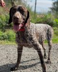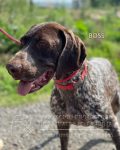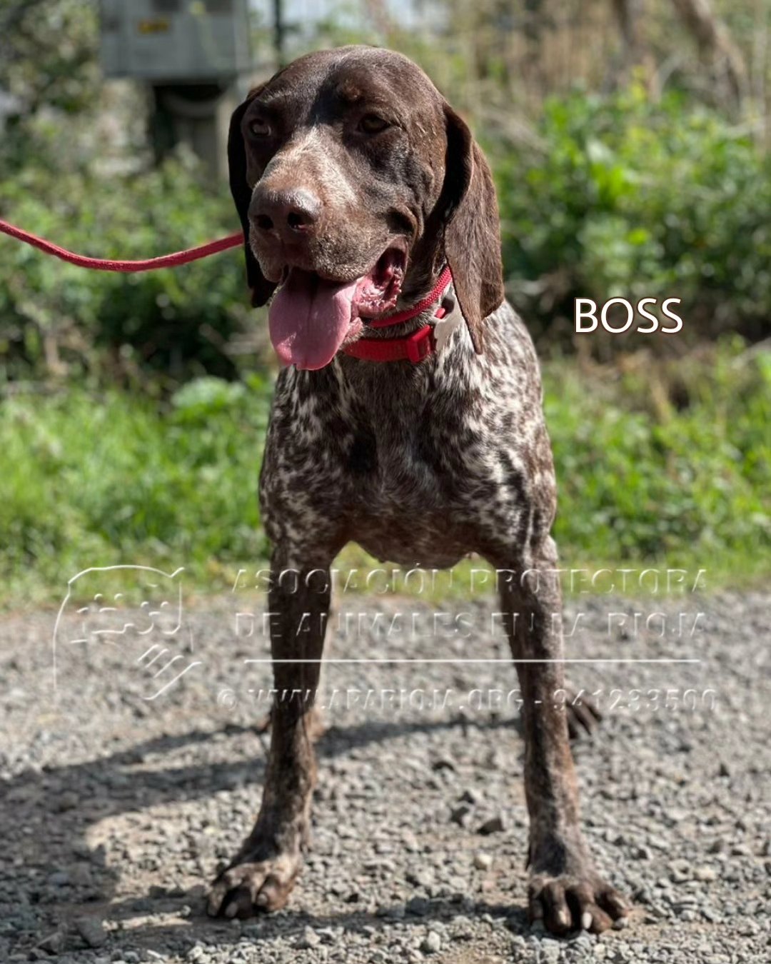 Algo tímido hasta que conoce, después se muestra sociable tanto con perros como con personas. Es activo y en los paseos va muy bien.