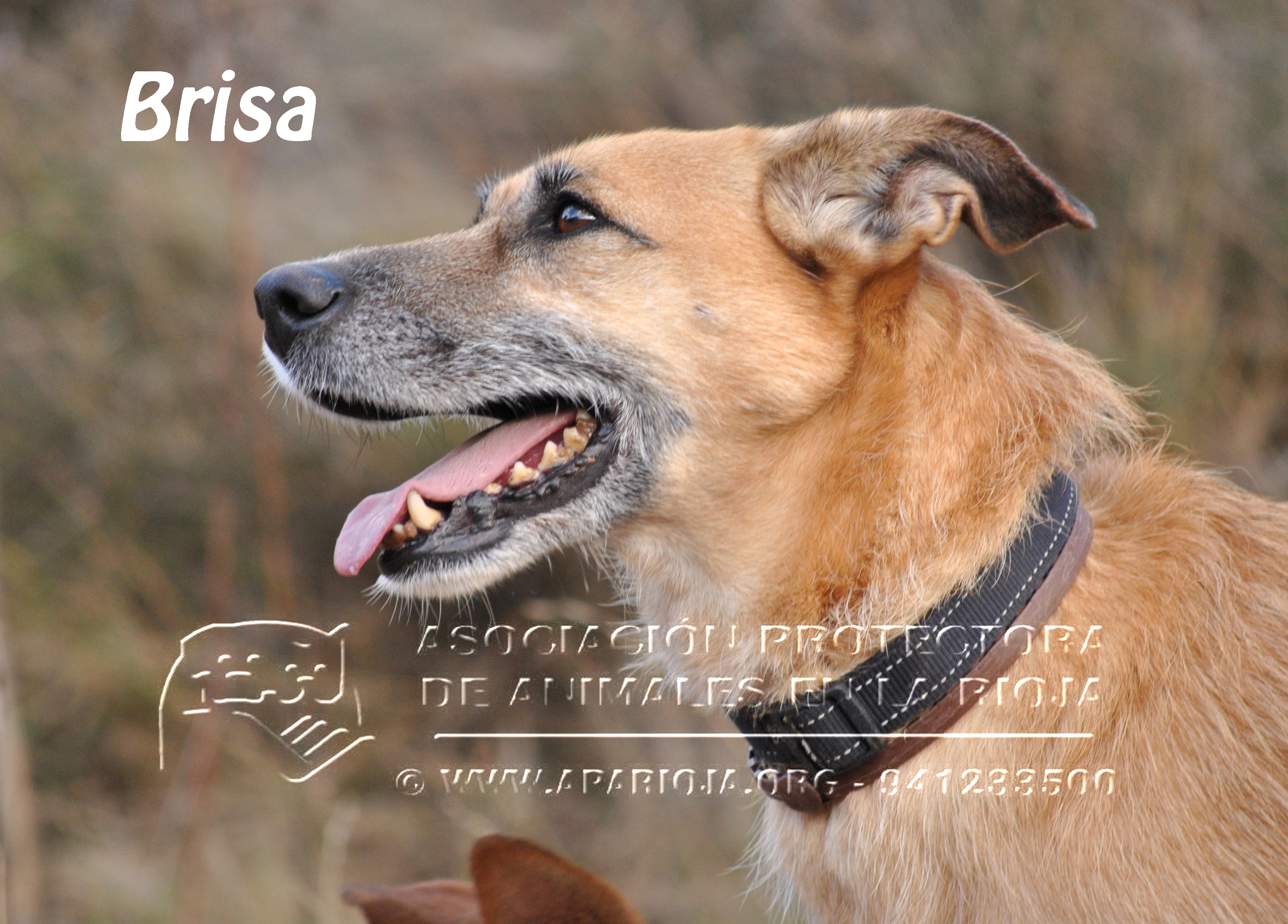 Hay mucha gente buena en el mundo. Personas que miran con el corazón y salvan una vida. Gracias a gente así, Brisa tiene otra oportunidad. Brisa es una perrita muy noble y buena nacida aproximadamente en septiembre de 2010. Tiene el pelo corto color marrón claro y el hocico algo más oscuro. Parece un pastor con algún cruce que no se ha podido averiguar. Aparte de muy bonita, es extremadamente cariñosa. Está a salvo gracias a una pareja que se la encontró abandonada cerca de la rotonda del Berceo, donde casi la atropellan y no dudaron en recogerla. Por supuesto, no llevaba chip identificativo y estaba muerta de hambre y frío.