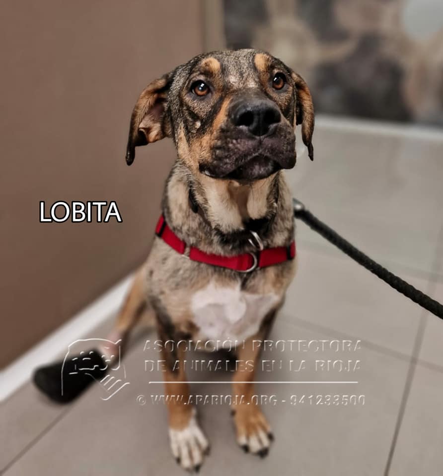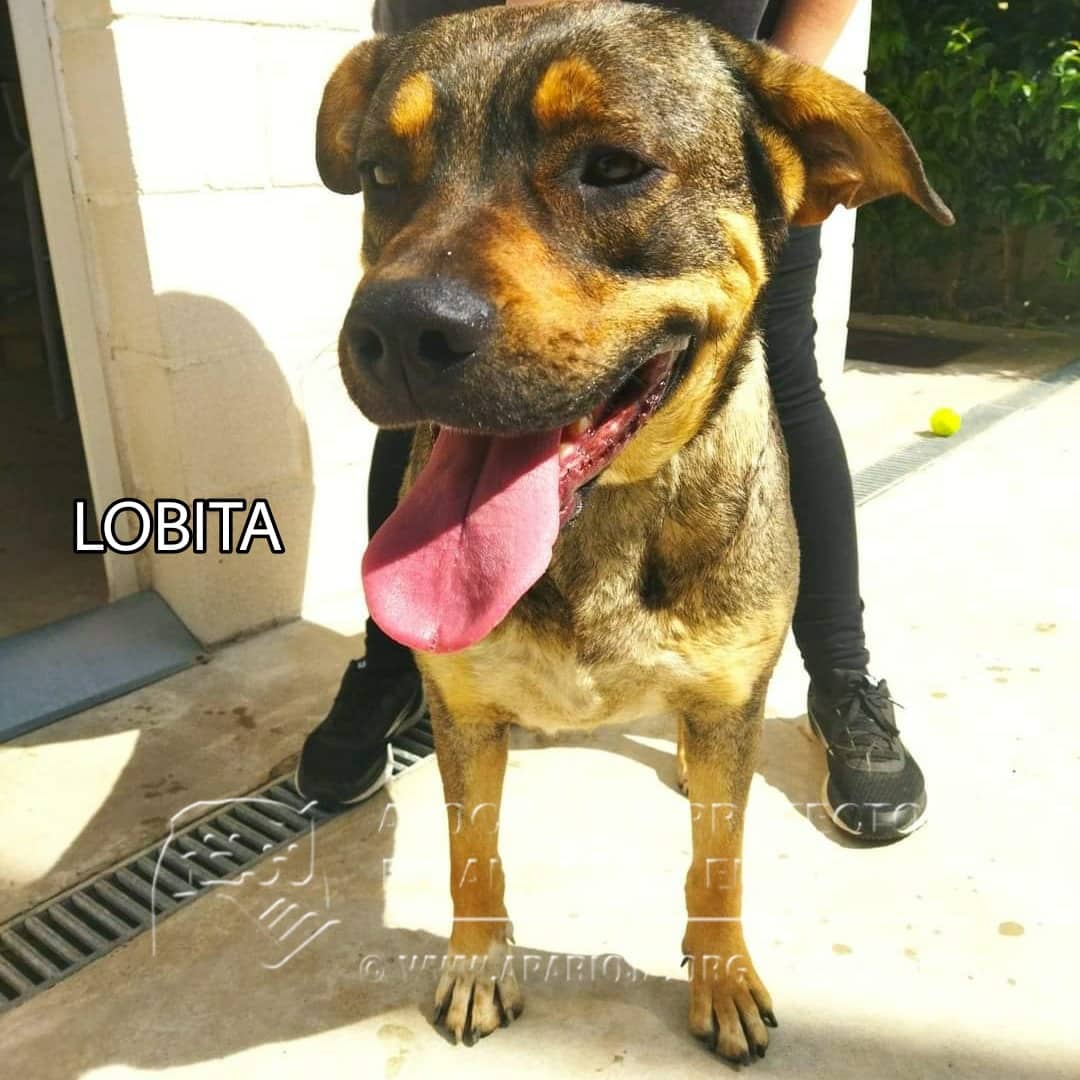 Lobita tiene un problema en una de sus patas traseras y necesita estar en una familia que la adopte para seguir un tratamiento y estar controlada para que no se la muerda.