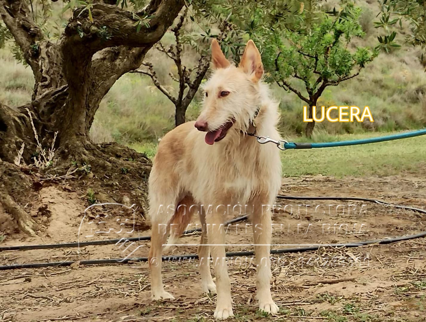 Lucera es una bonita podenca nacida aproximadamente en agosto de 2016 y rescatada de la perrera el 13/02/2018 cuando había cumplido su tiempo en la perrera donde llegó en diciembre de 2017.