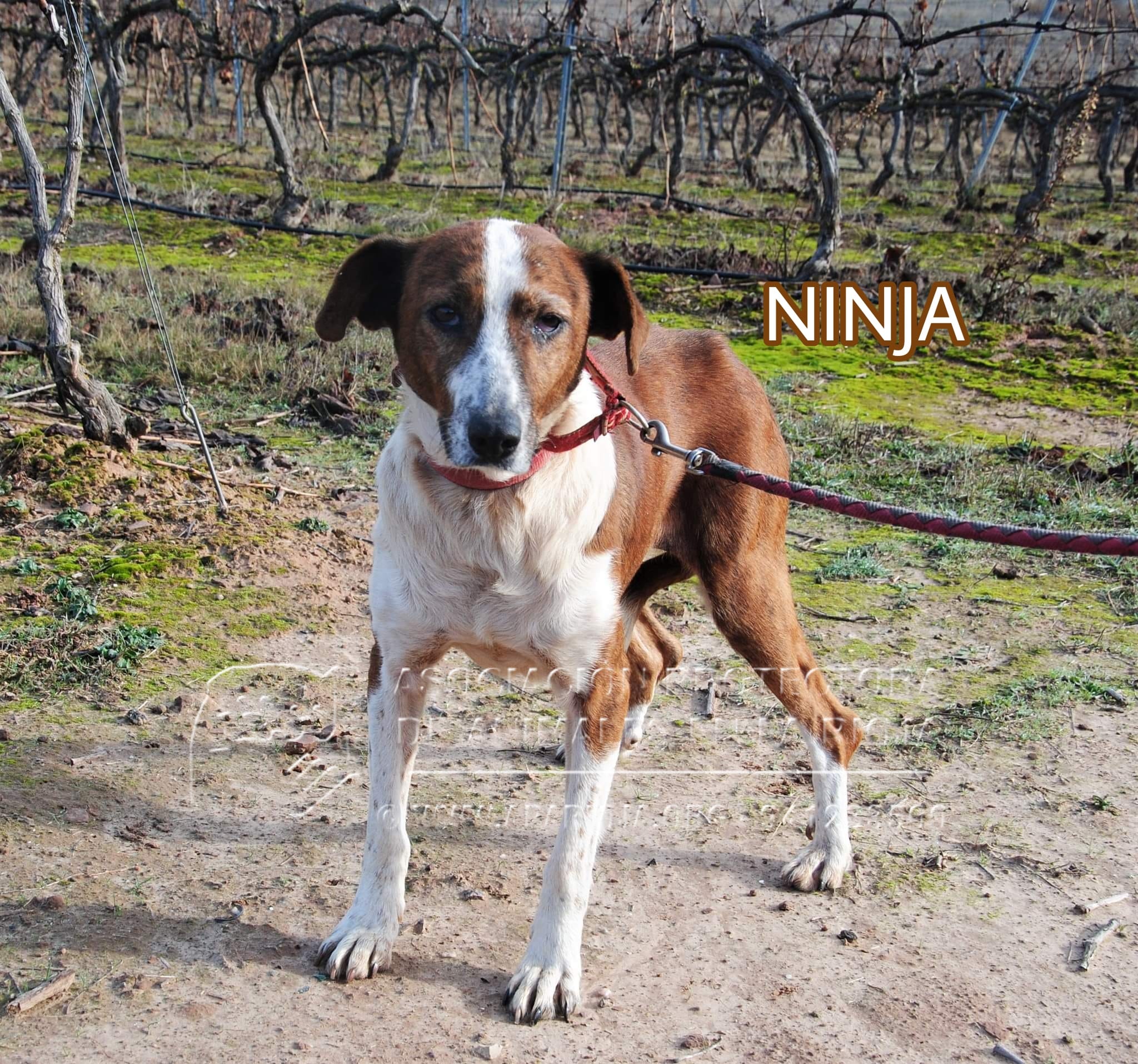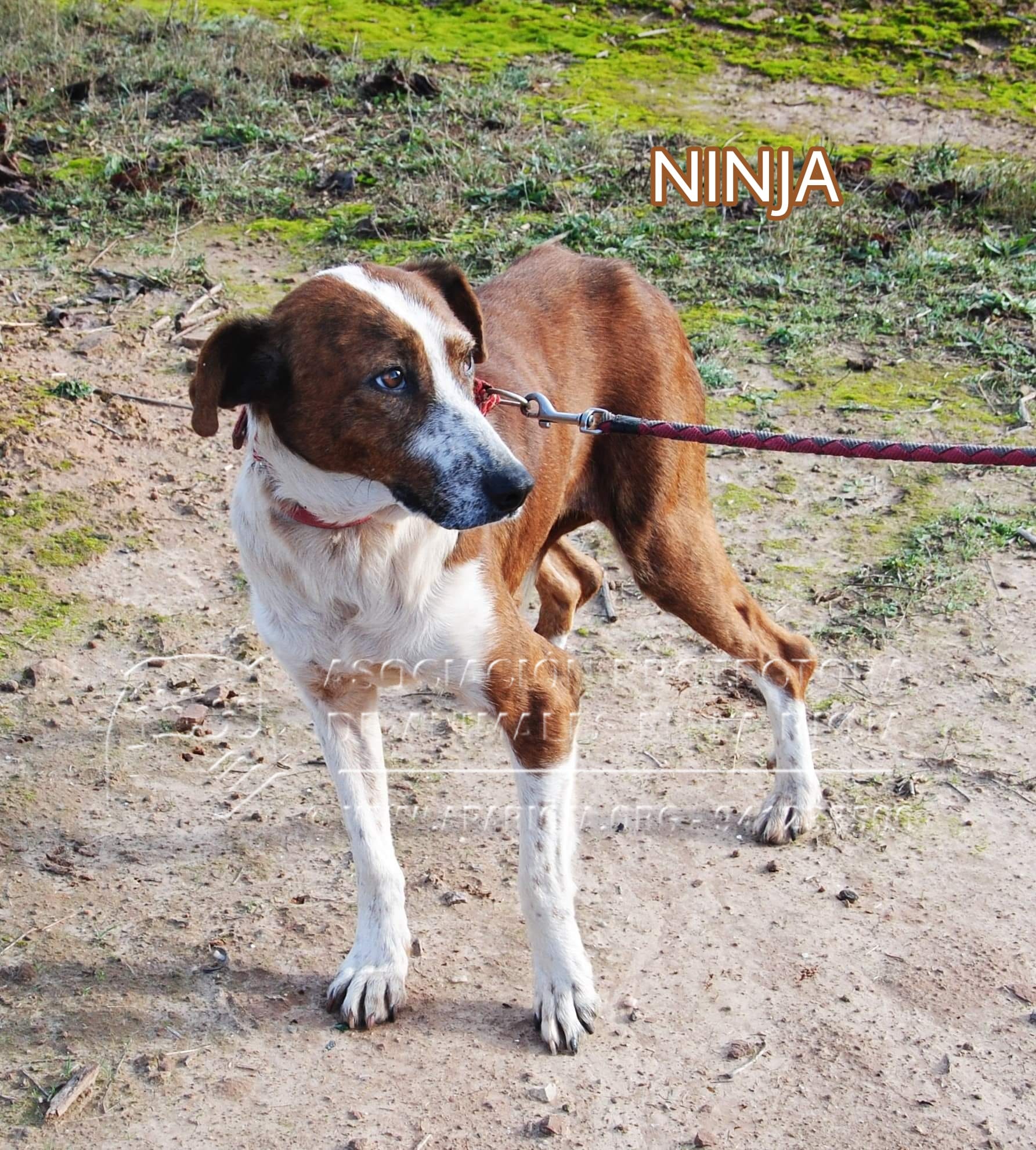Ninja es una perrita mayor que no ha tenido que pasarlo bien en su vida anterior.