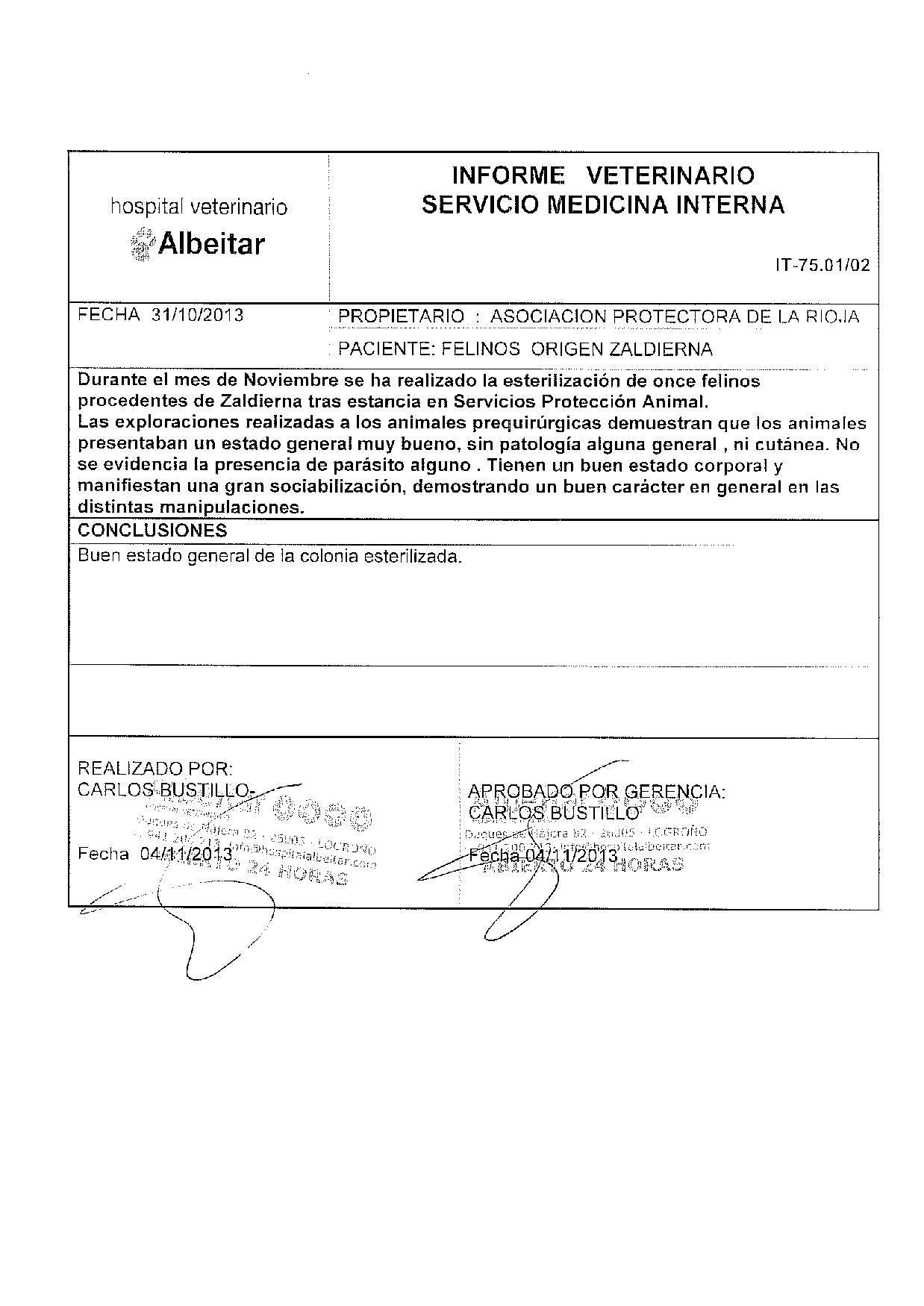La perrera recogió 11 gatos en dos días, y nuestra Asociación se hizo cargo de ellos, animales muy sociables y sin sarna ni ninguna otra enfermedad, según certifica la perrera y el informe veterinario que enviamos junto a esta carta, y que demuestra que el Sr. Corral de nuevo falta a la verdad.