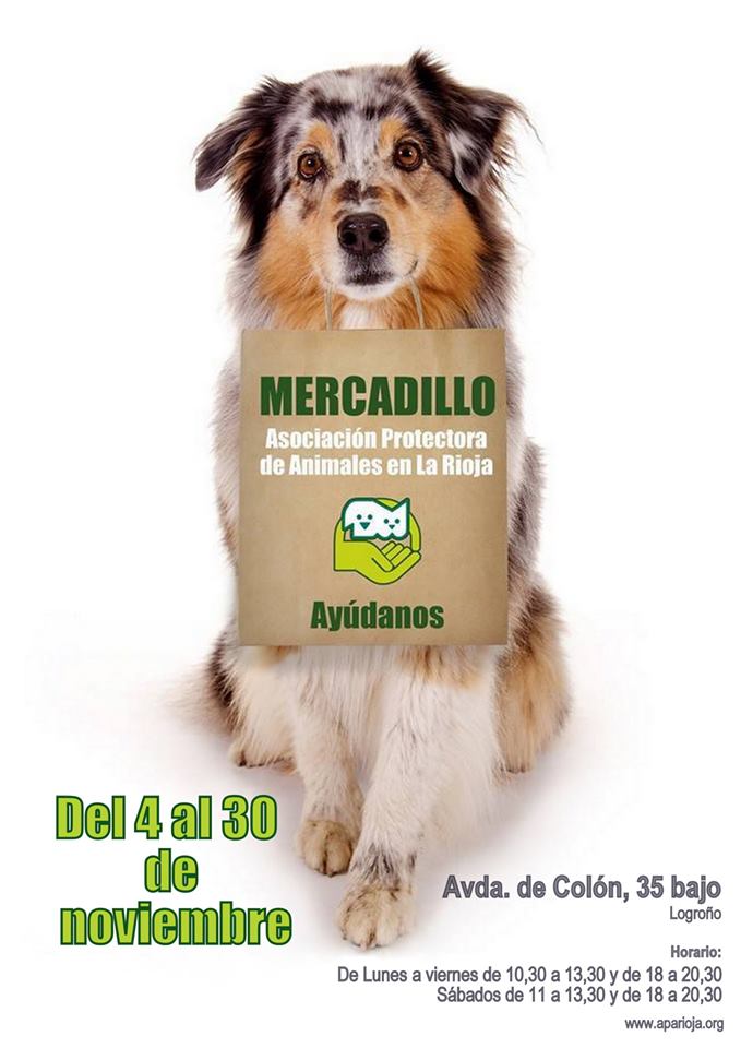 🛒🎁 El próximo lunes  4 de noviembre y hasta el 30 del mismo, celebraremos como cada año el MERCADILLO SOLIDARIO de la Asociación Protectora de Animales en La Rioja 🐶🐱